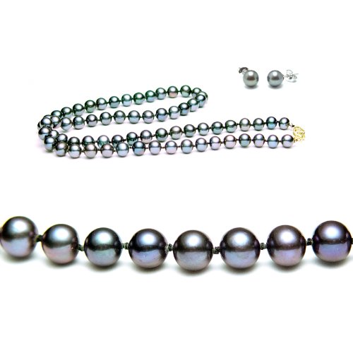 Freshwater Cultured Pearls Set 18 Inches 1-Strand 6-7mm Black Pearl Necklace & 6-7mm Black Pearl Earrings Review and Compare Price