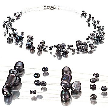 Bold and beautiful black freshwater cultured pearls will magically float around you! This gorgeous black necklace is created from genuine high quality freshwater pearls. Carefully grown over many years, they have been gently harvested and matched to the strictest of standards.You will love these dainty and elegant 4 to 8mm pearls - delicate and gentle.This value priced A quality necklace features very nice AA luster, naturally beautiful off round A shape and AA body.This necklace is carefully hand strung, using the strong nylon filament. Nearly invisible to the eye, it makes the pearls appear to float. A wonderful effect.Your necklace will be carefully packed and shipped to you in an elegant velvet lined box and accompanied by lots of free extras (please see below).And, if you choose, we would be delighted to gift wrap your necklace and turn this necklace into an unforgettable gift.