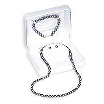 The perfect gift to give that will make her look complete and stylish. This complete trendy pearl set includes a black Cultured Freshwater pearl necklace, bracelet and a pair of earrings finished with 14k yellow gold. The height of sophistication!