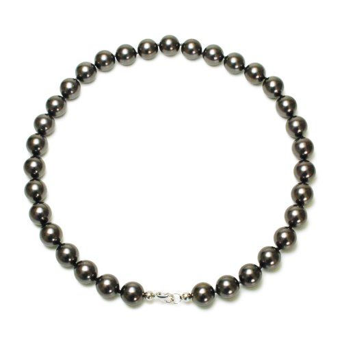 Sterling Silver 12mm Round Black Shell Pearl Necklace, 18" Review and Compare Price